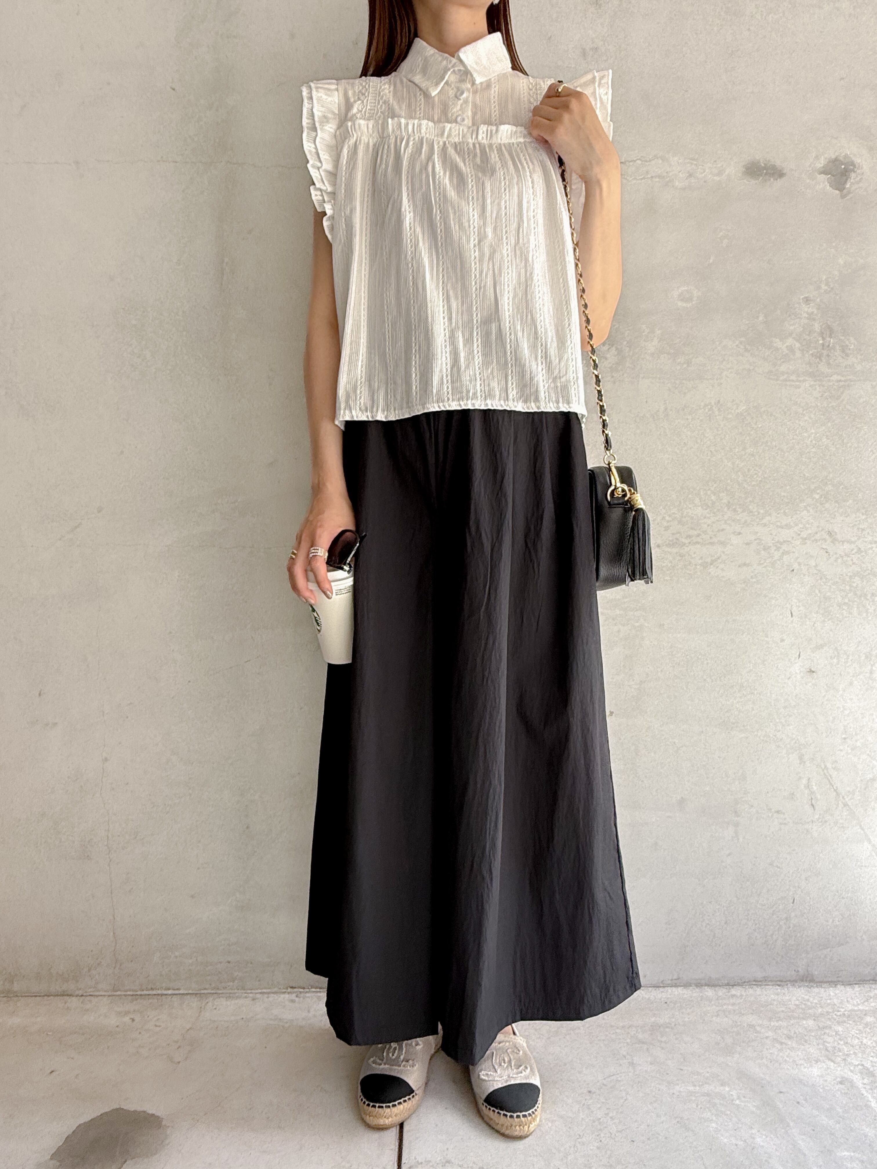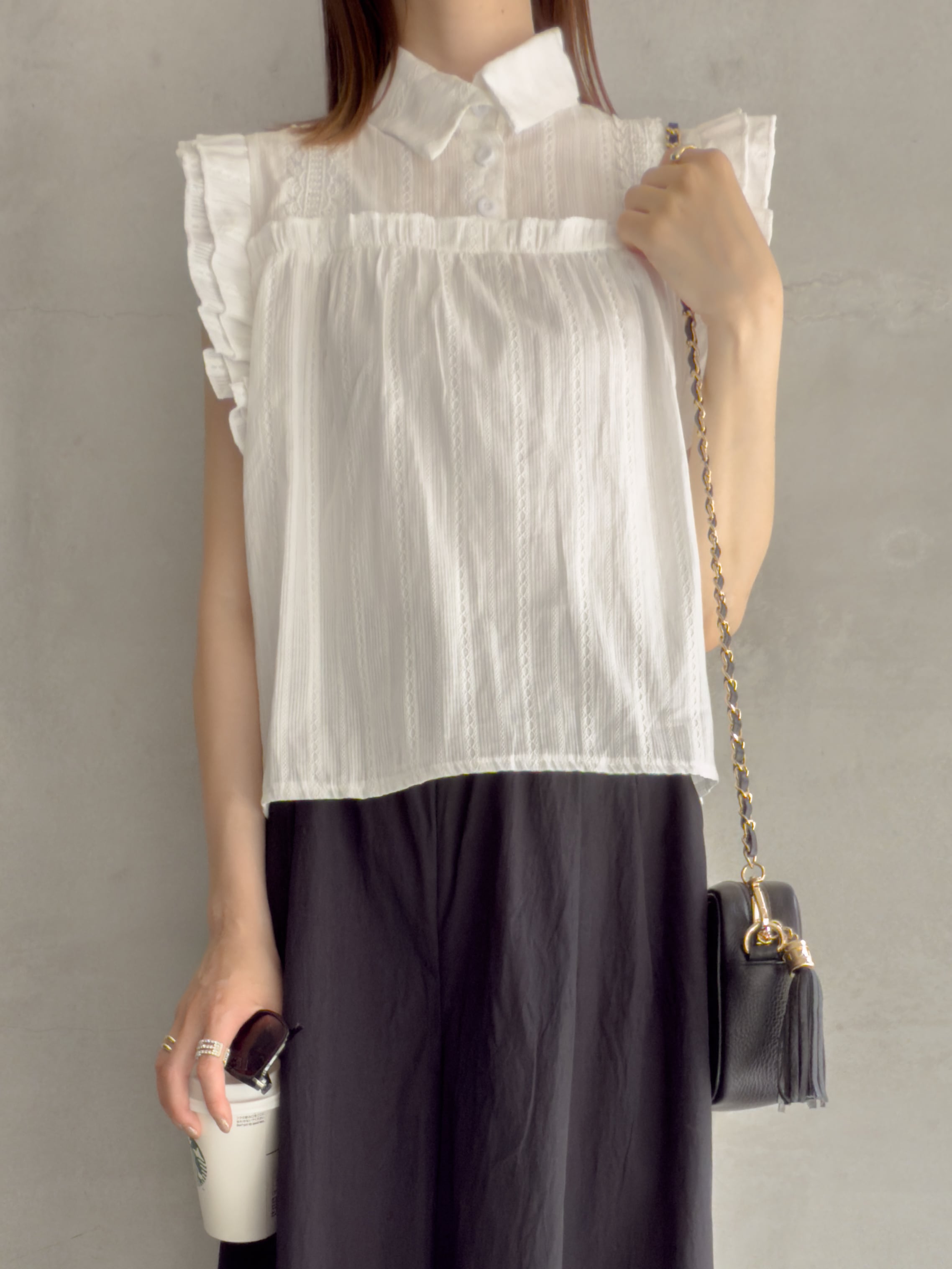 肩まわりを華やかに見せてくれるダブルフリルは、着るだけでコーデの主役に