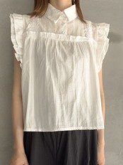 繊細なレースと立体感のあるWフリル袖が印象的な、大人の甘さを演出するブラウス