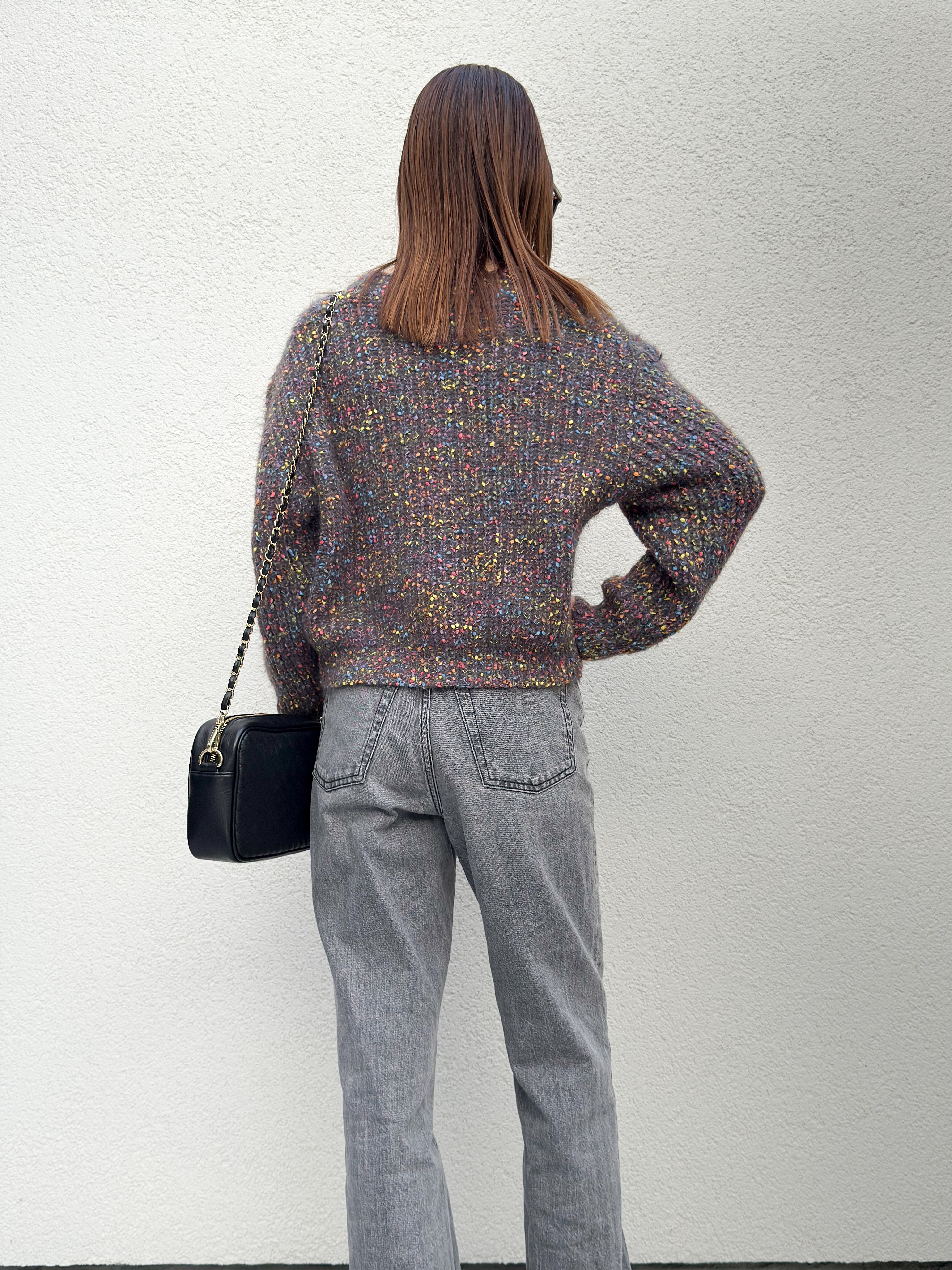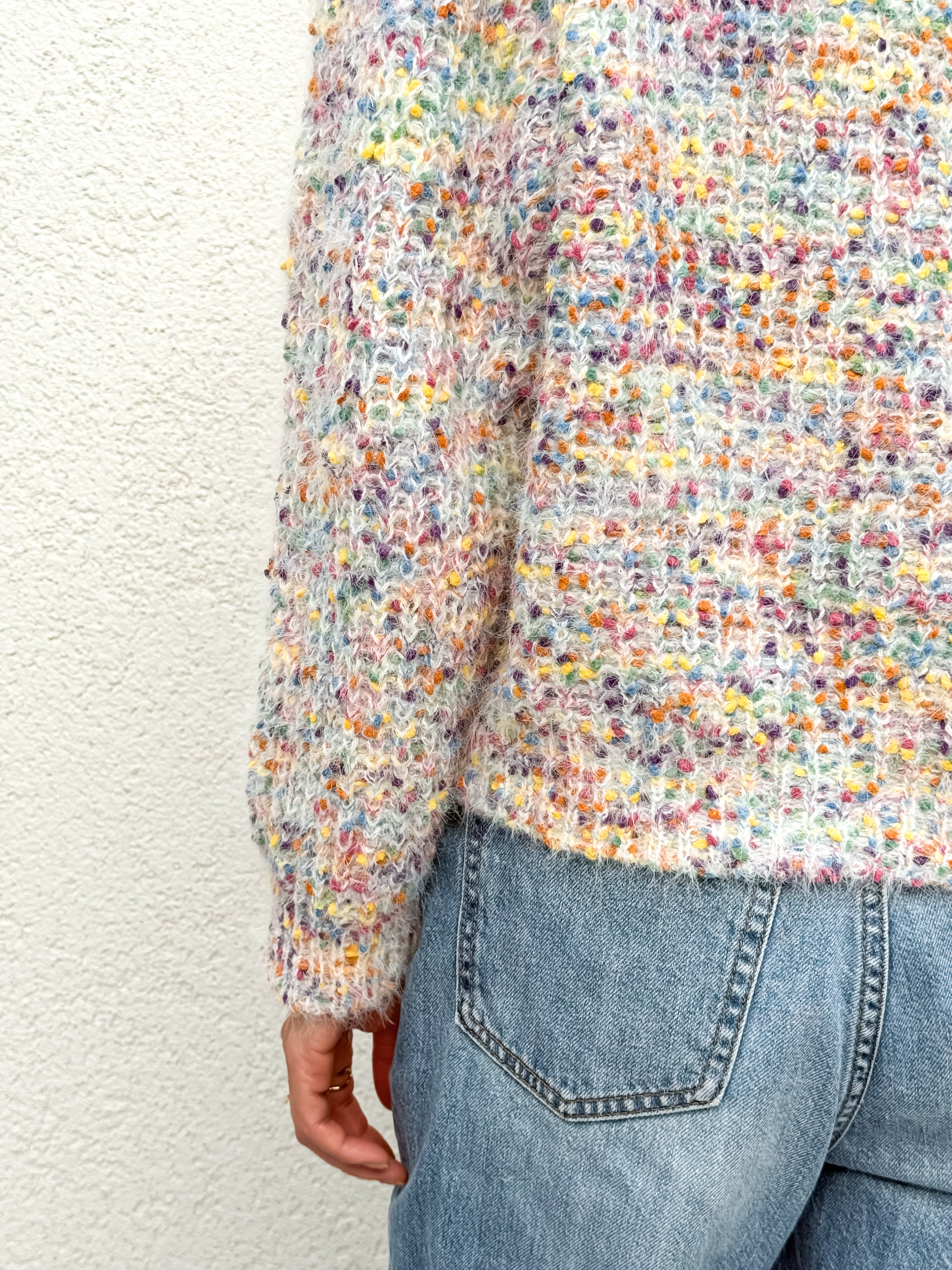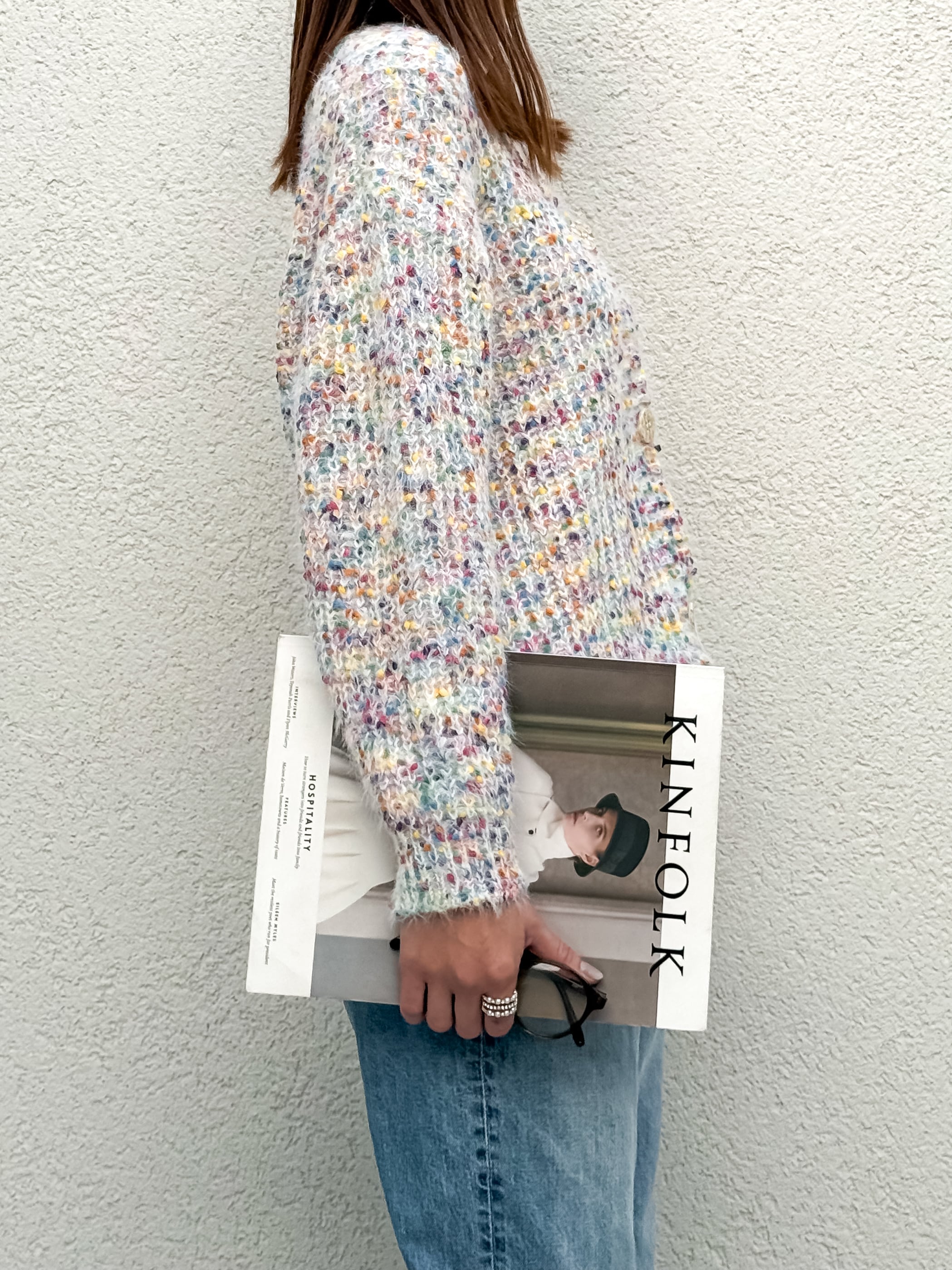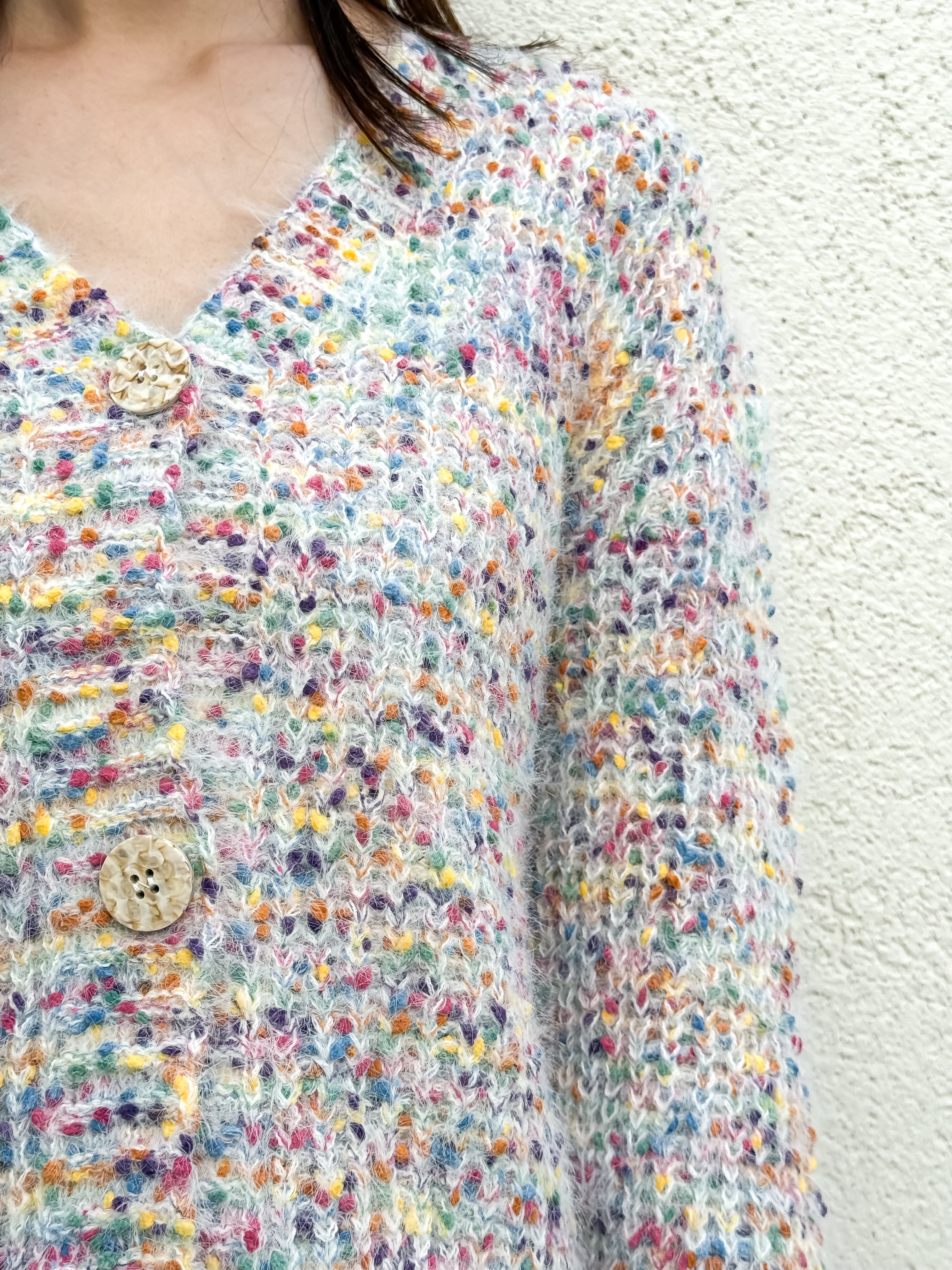ふんわり柔らかな糸にカラフルなネップが散りばめられた見た目も着心地も暖かい1枚
