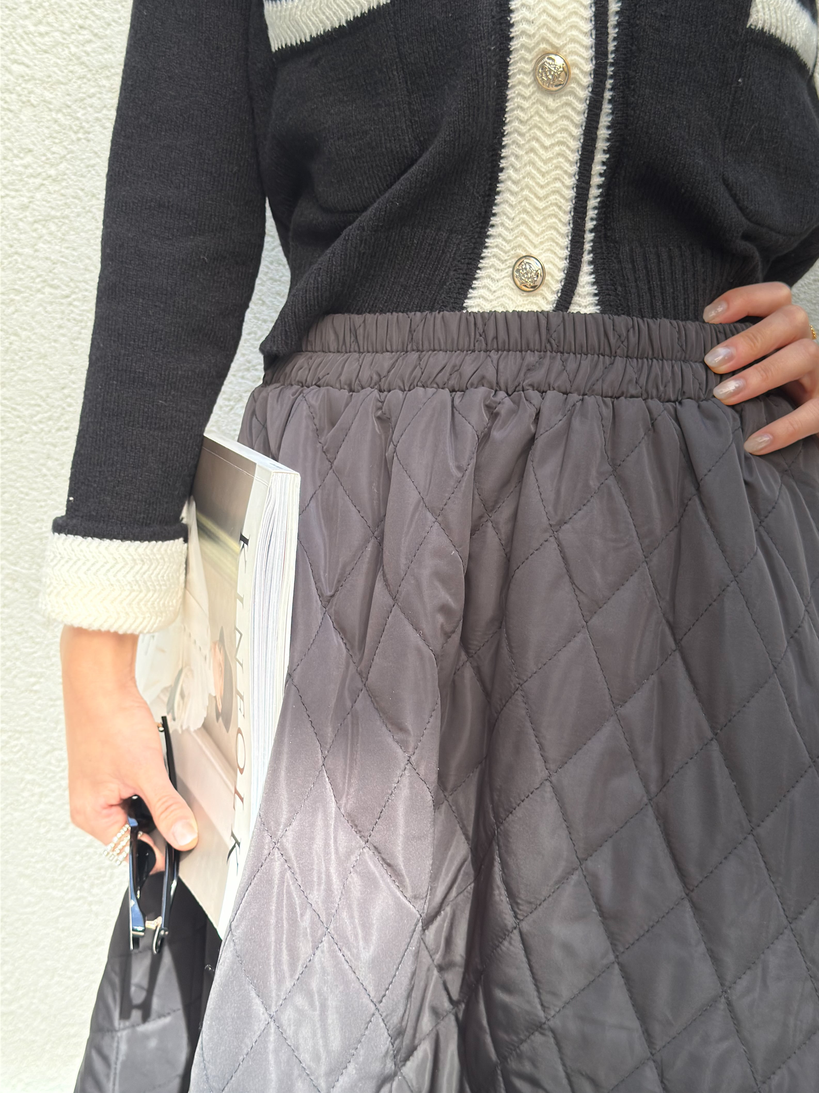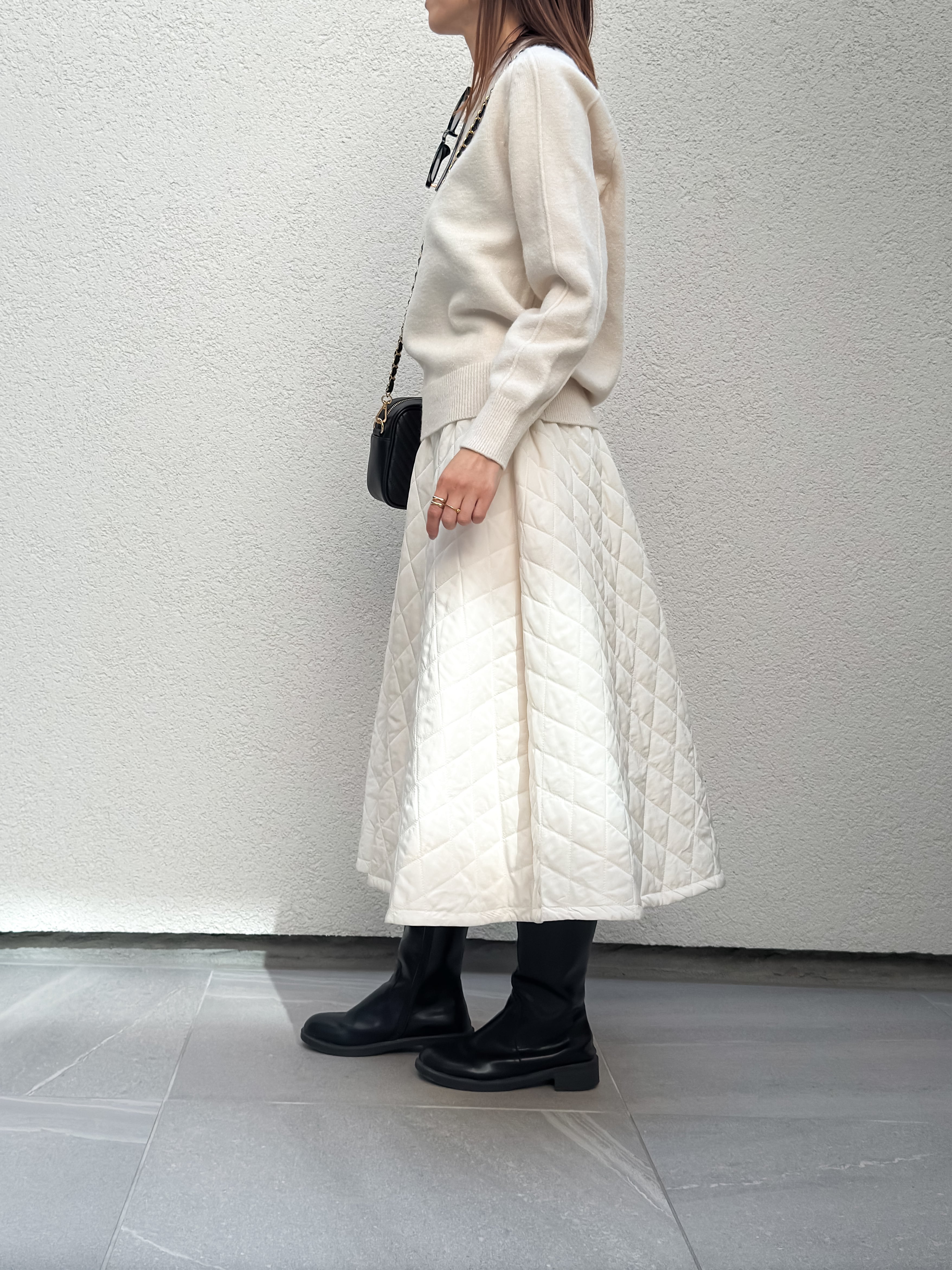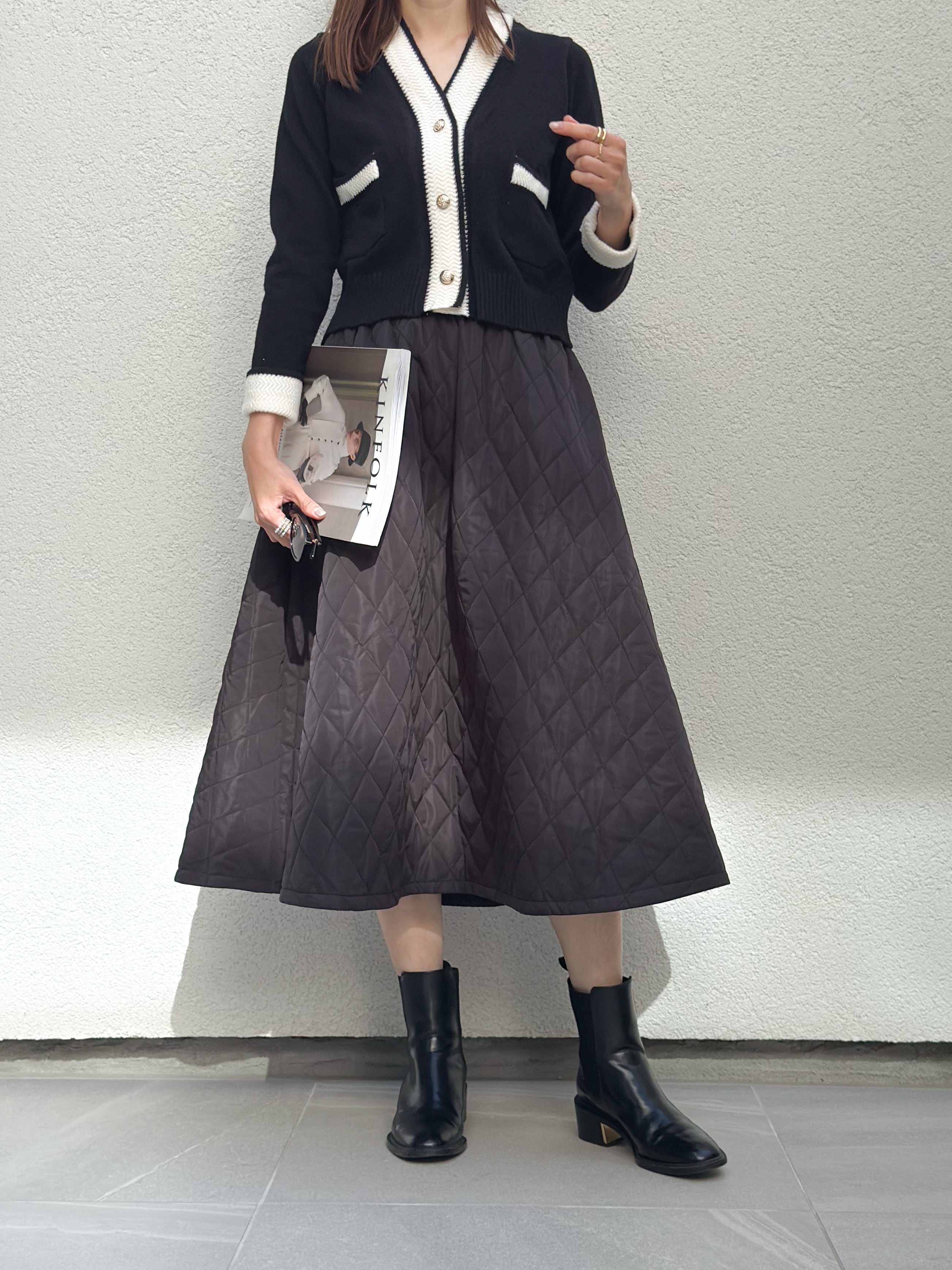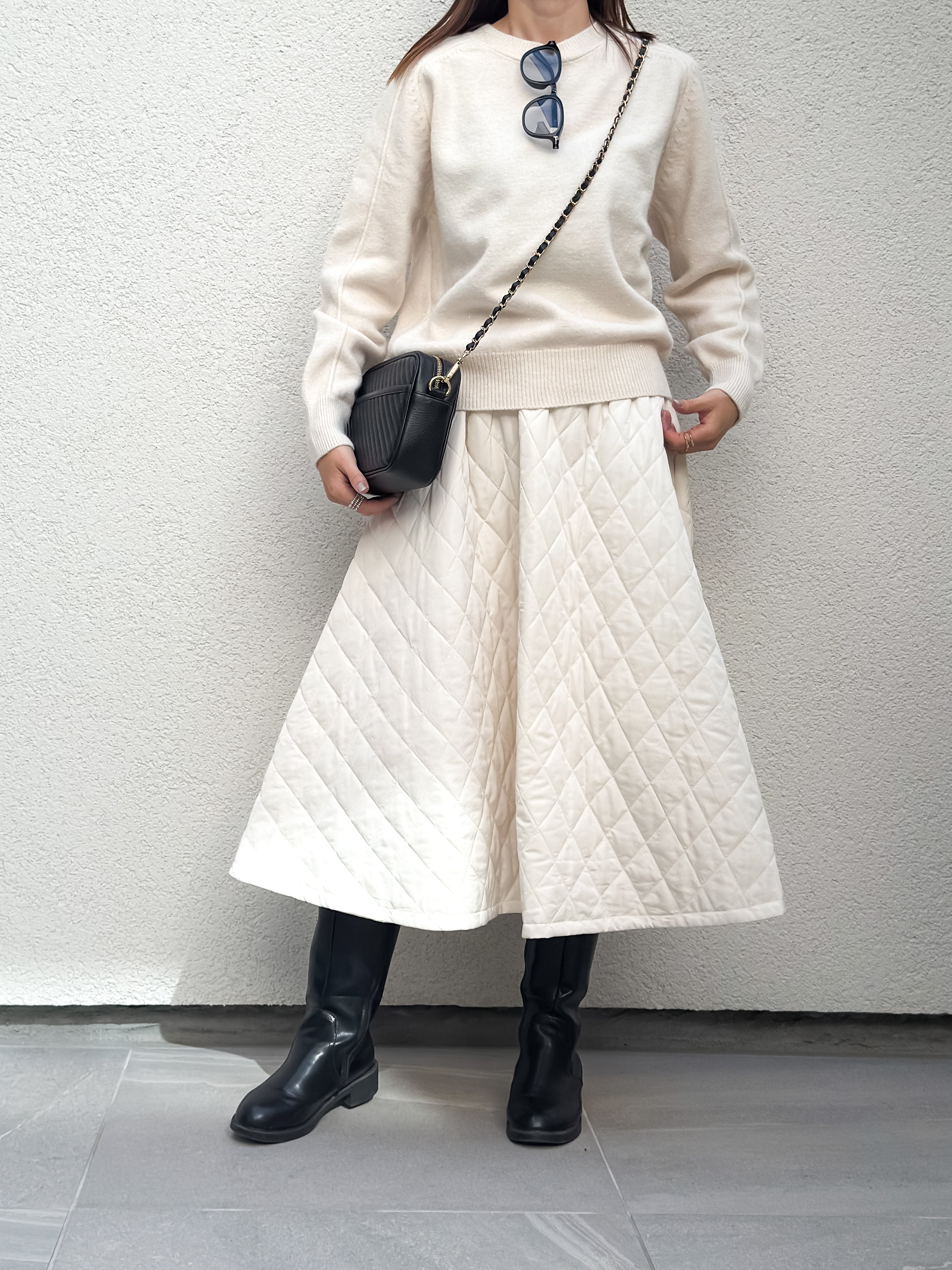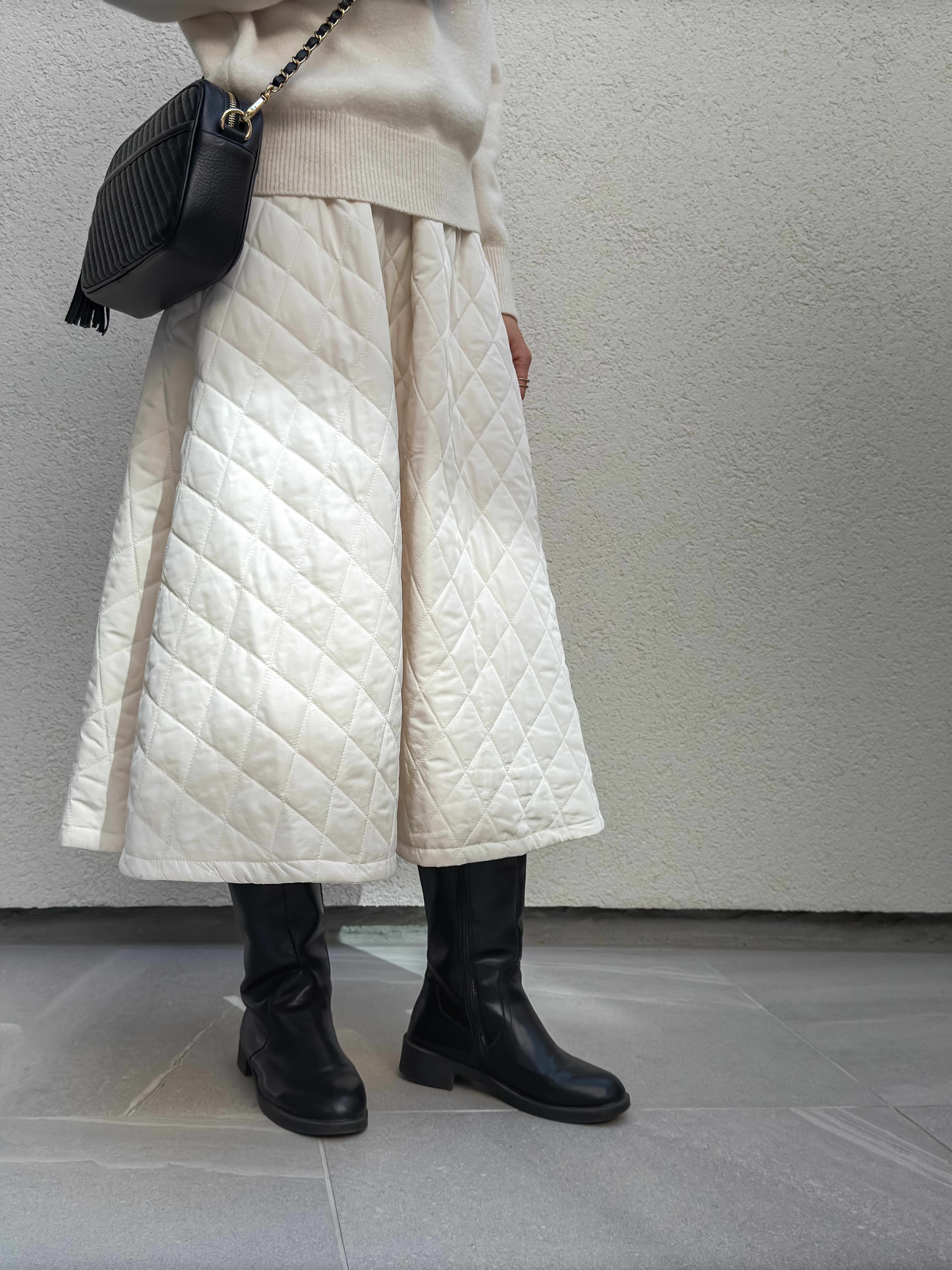 立体的なキルティングデザインが上品で、ボリュームが出過ぎずすっきりとした印象に