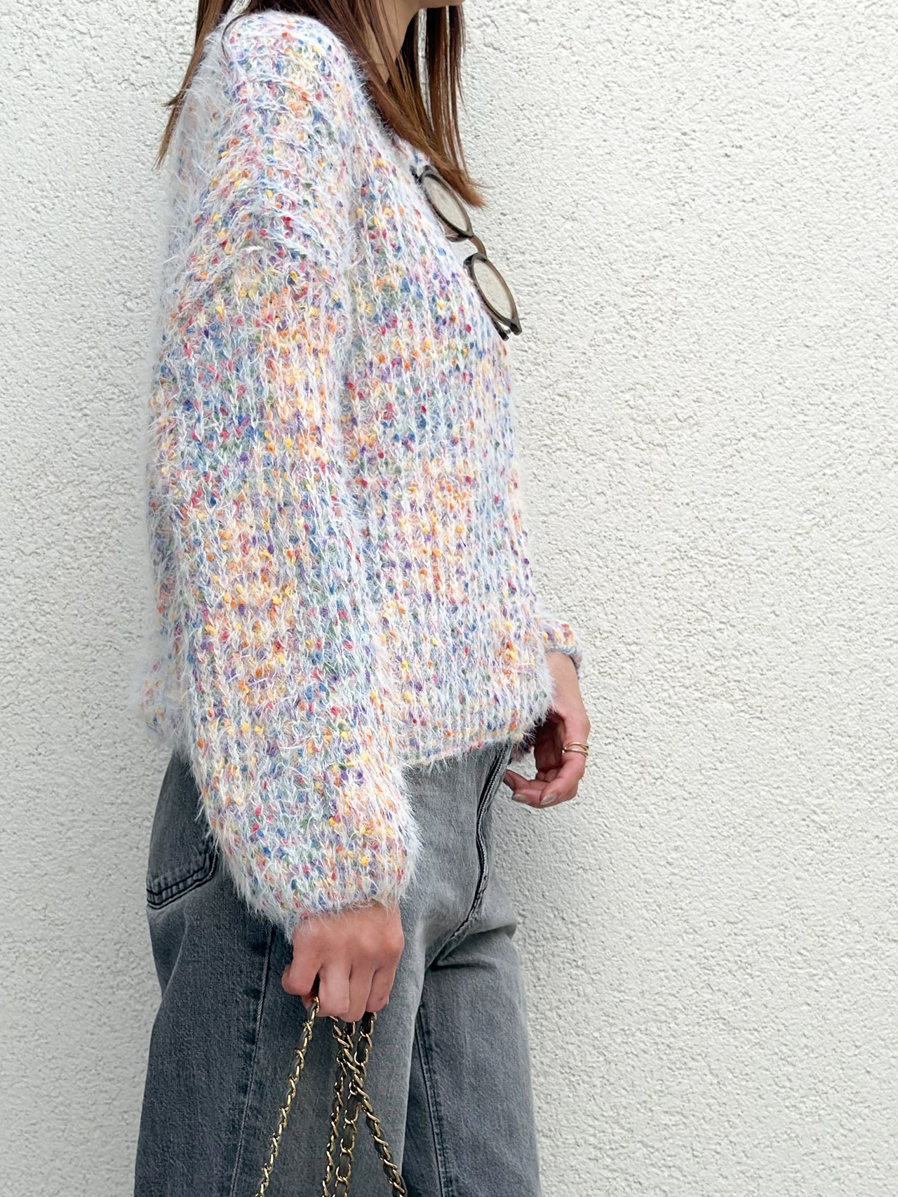 カラフルなマルチカラーが可愛い厚みのあるニット