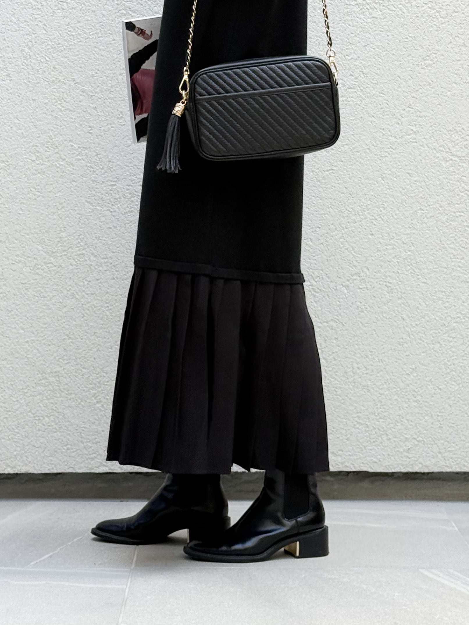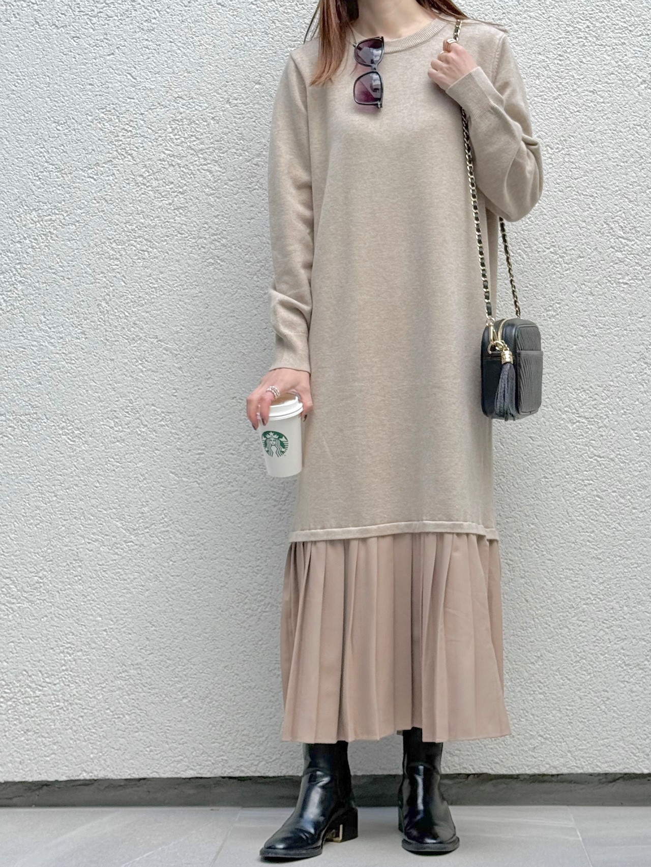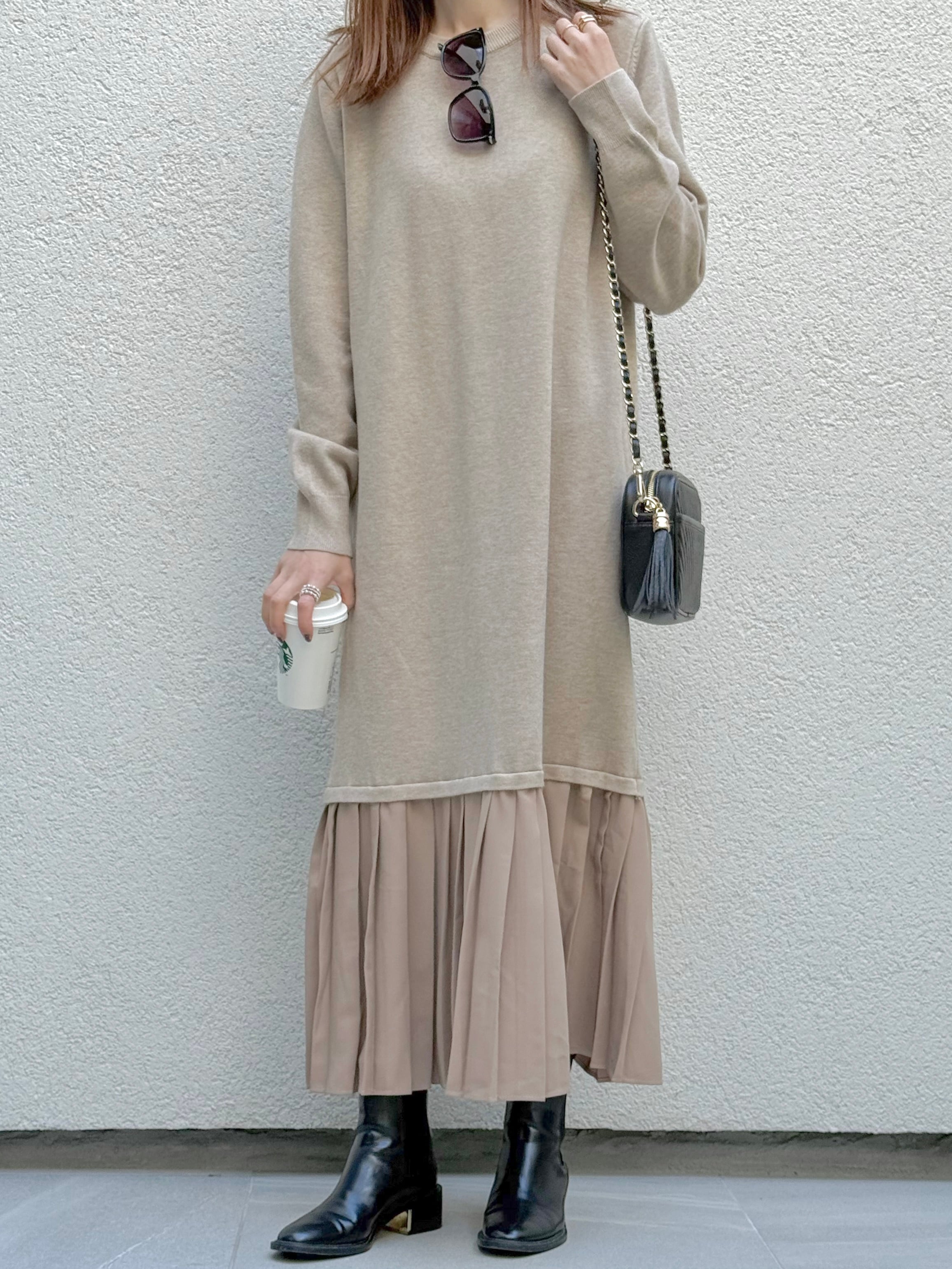 柔らかなハイゲージニットに上品なプリーツスカートを