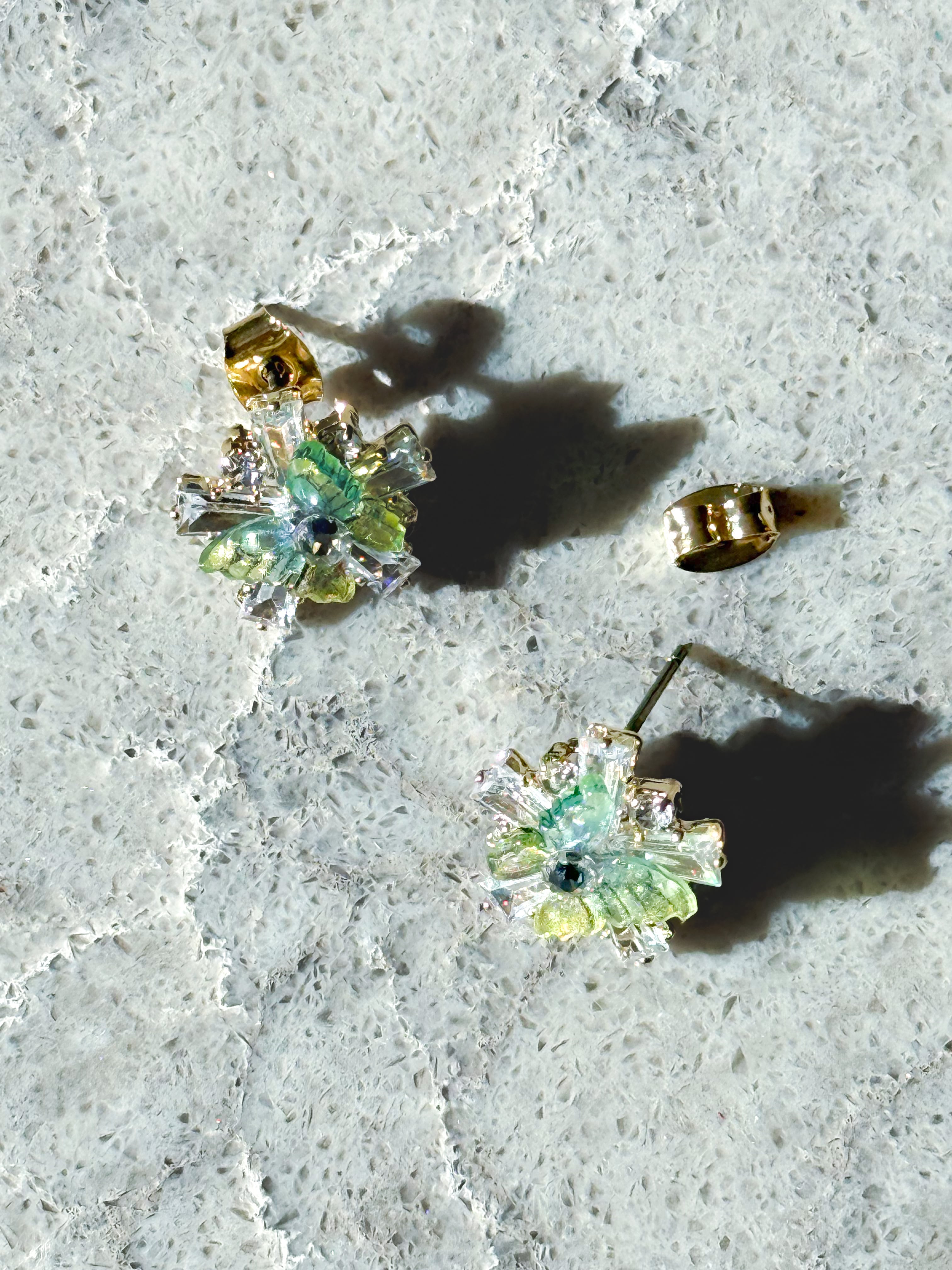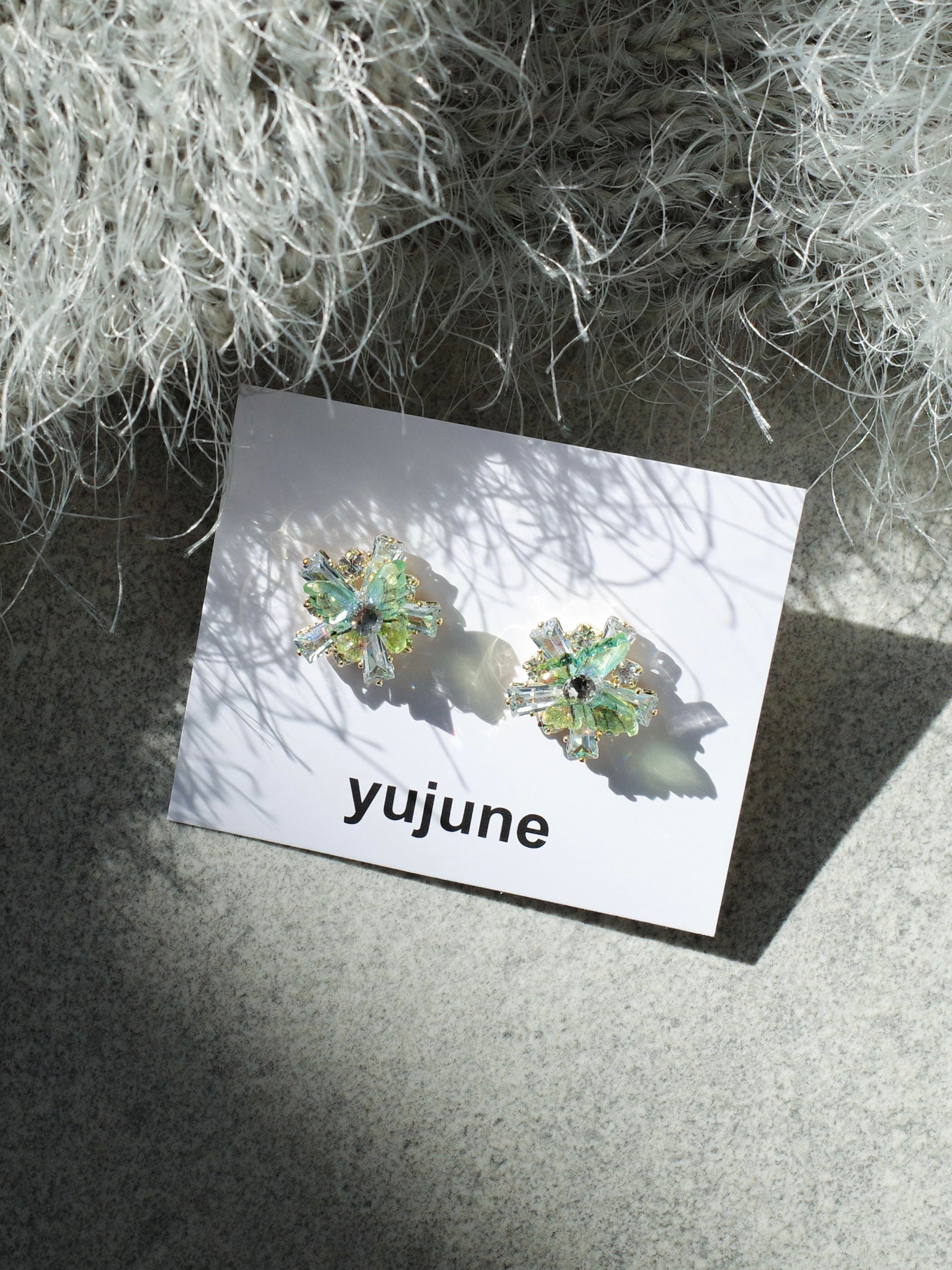 透明感のあるグリーンとクリアビジューを組み合わせた