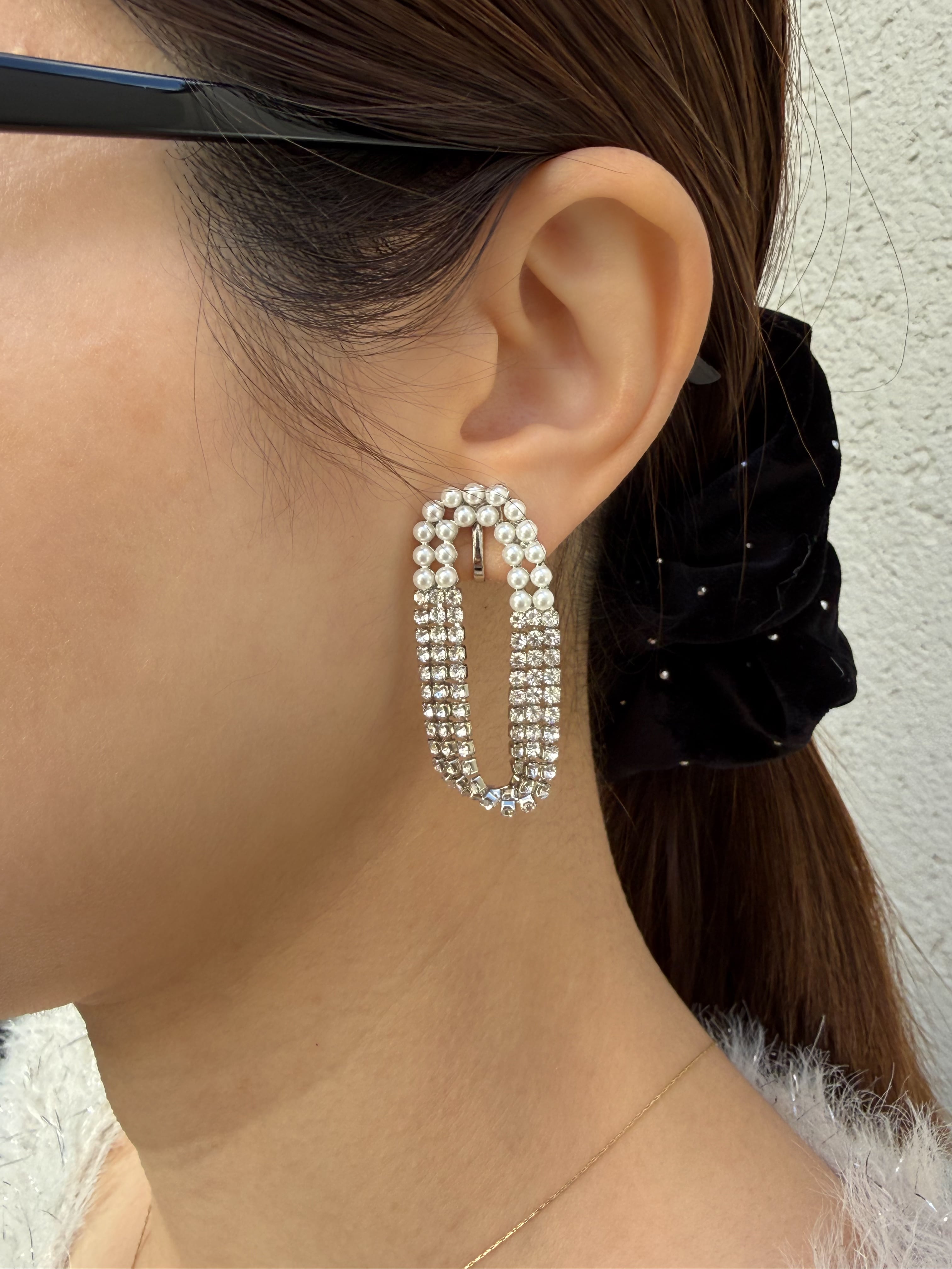 パールとビジューを組み合わせた存在感のあるイヤリング