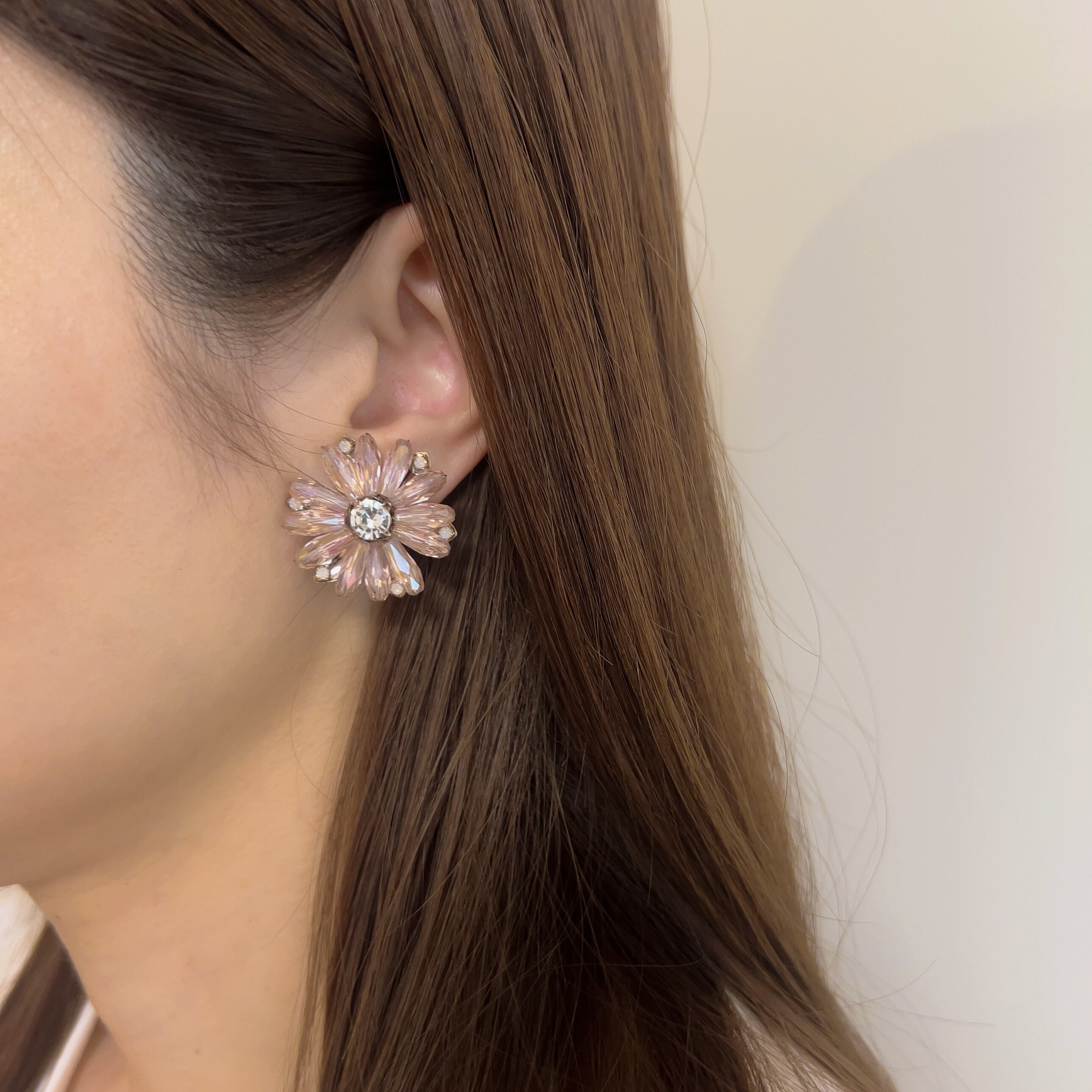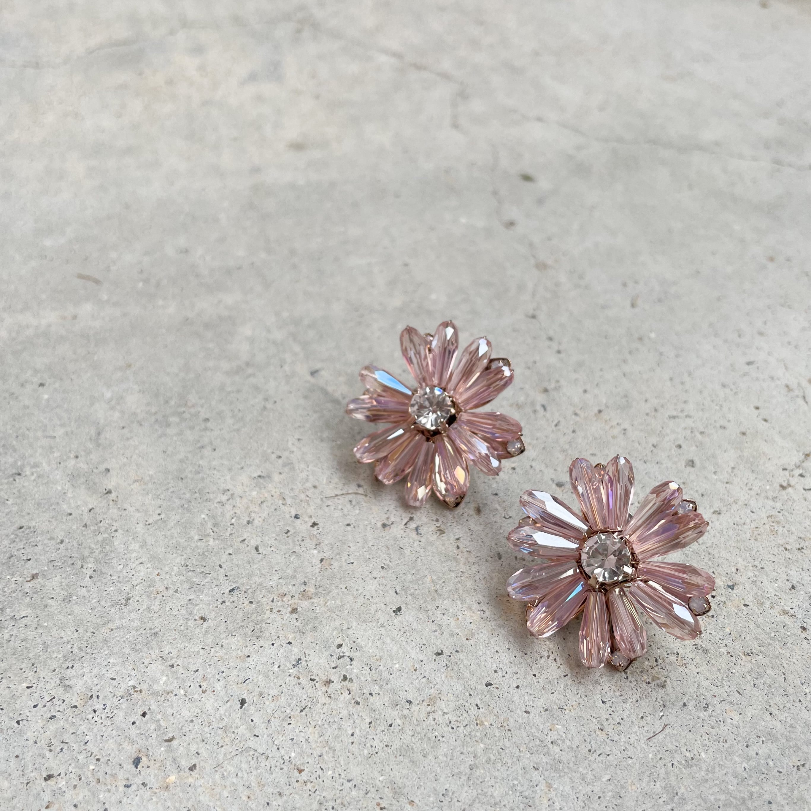 クリアなパープルピンクが涼しげなお花モチーフイヤリング。