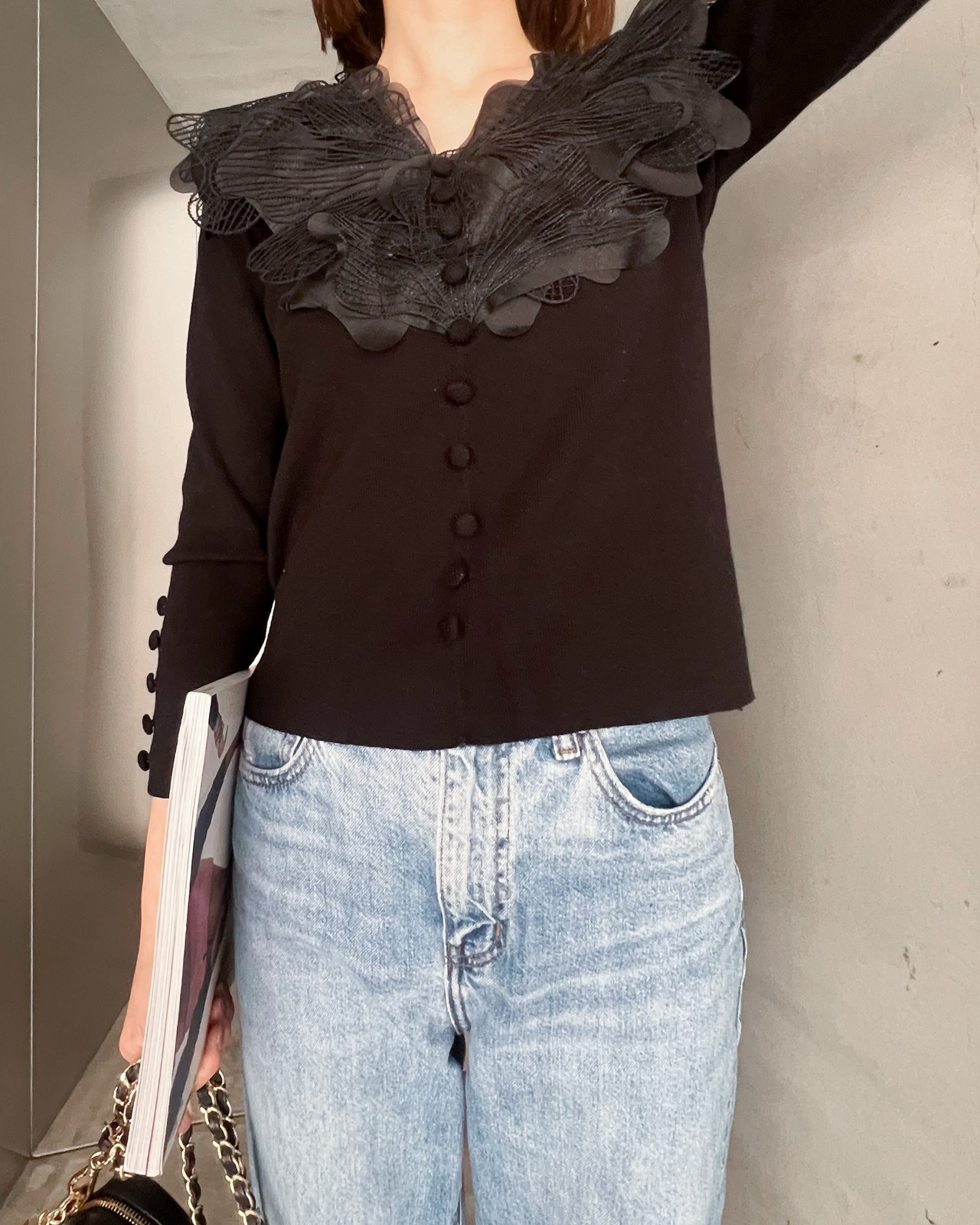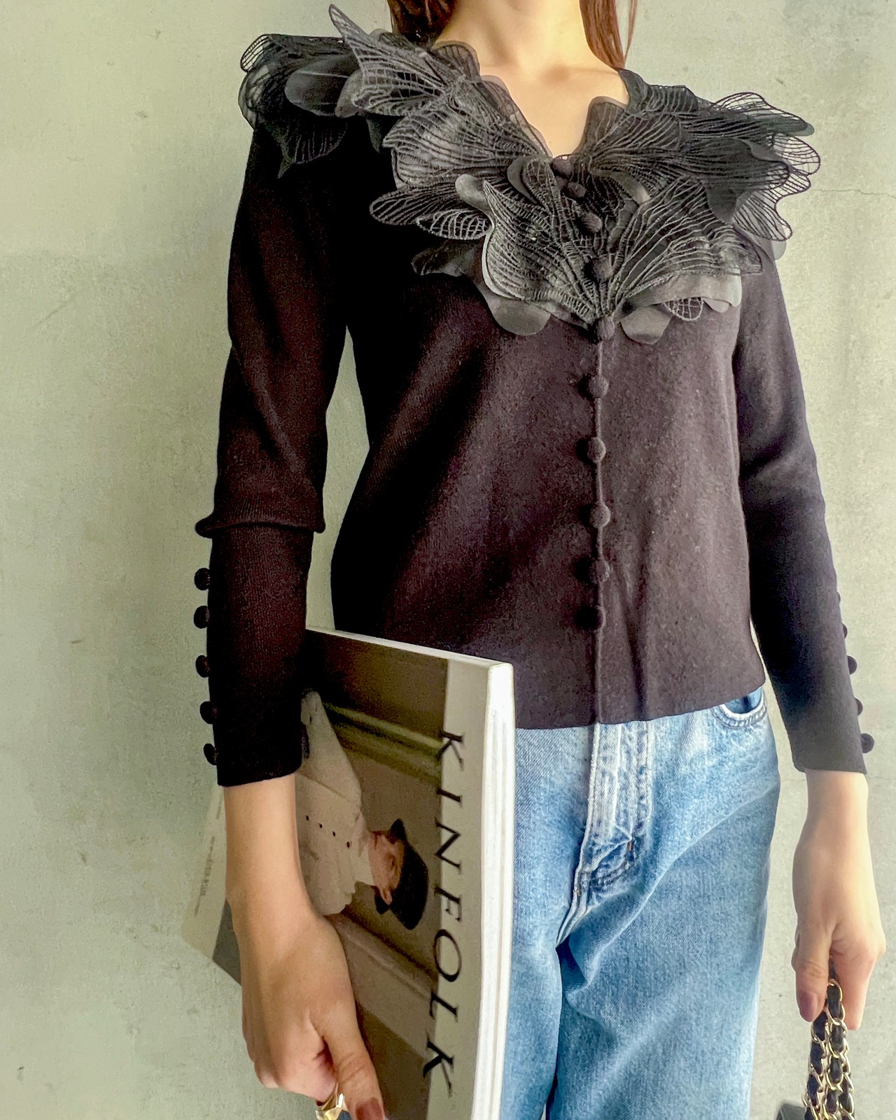 胸元が華やかになるバタフライニット♡