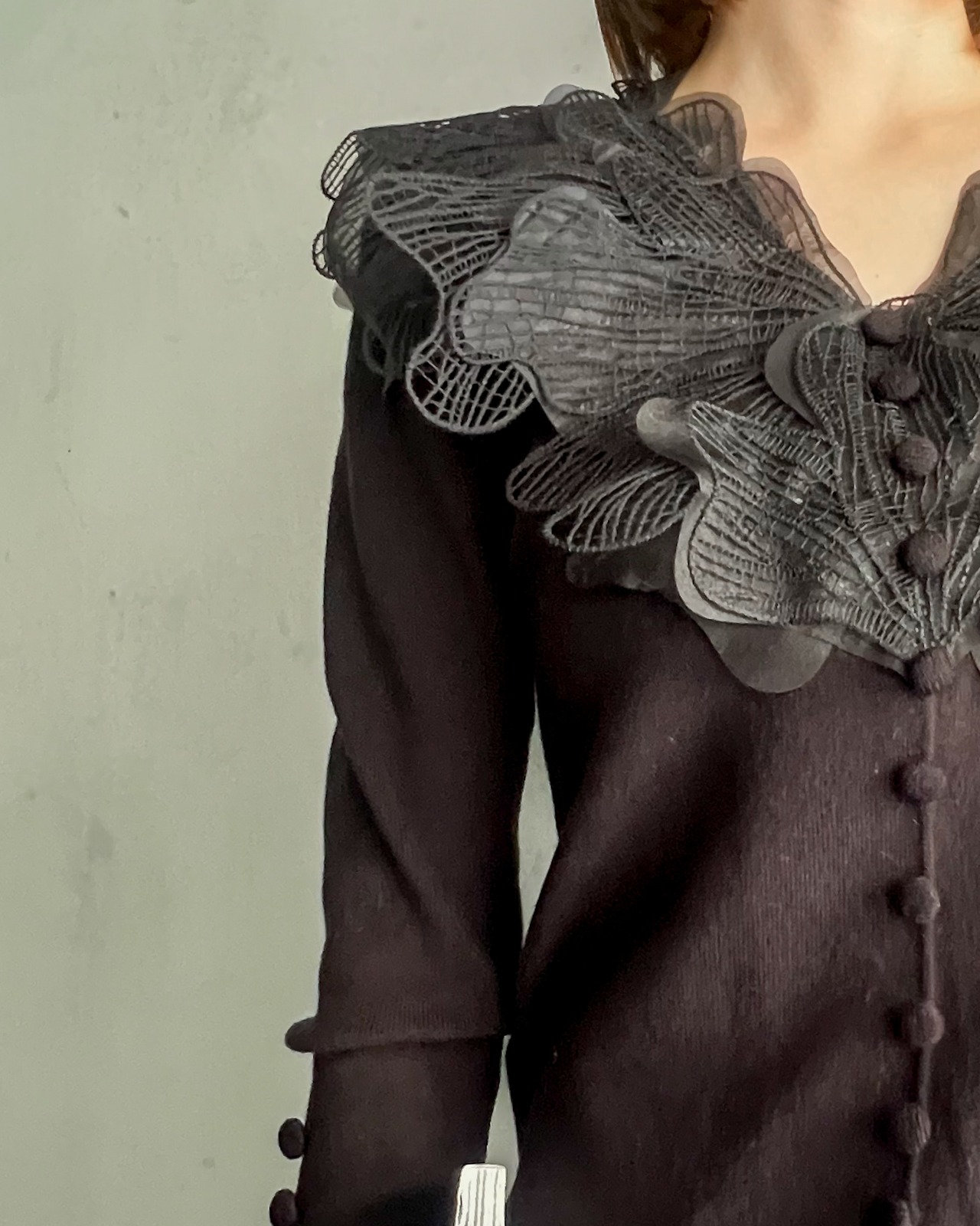 蝶々みたいな胸元がひらひらと可愛らしさを演出します。さりげなくあしらわれたボタンもとてもキュートです!